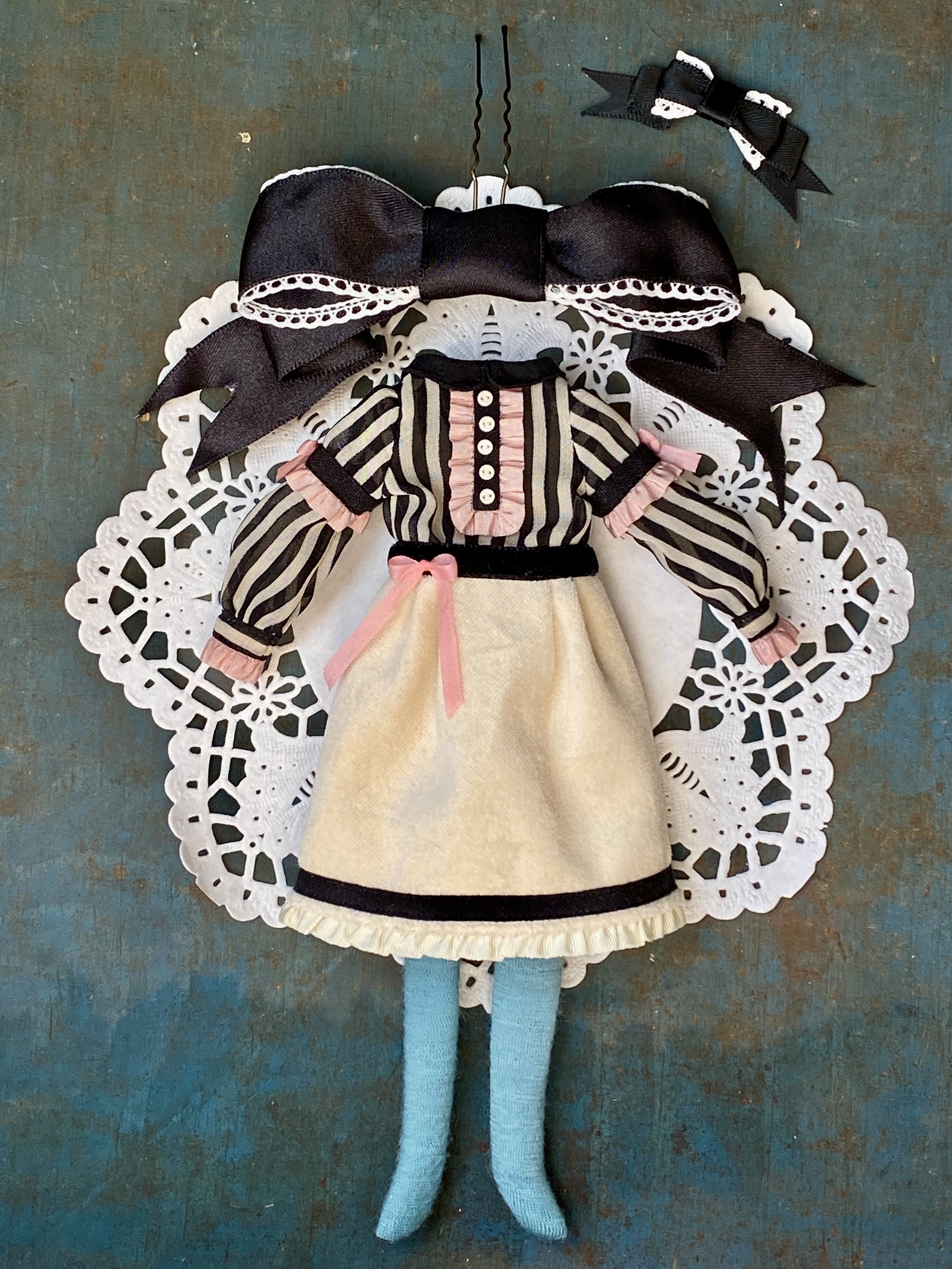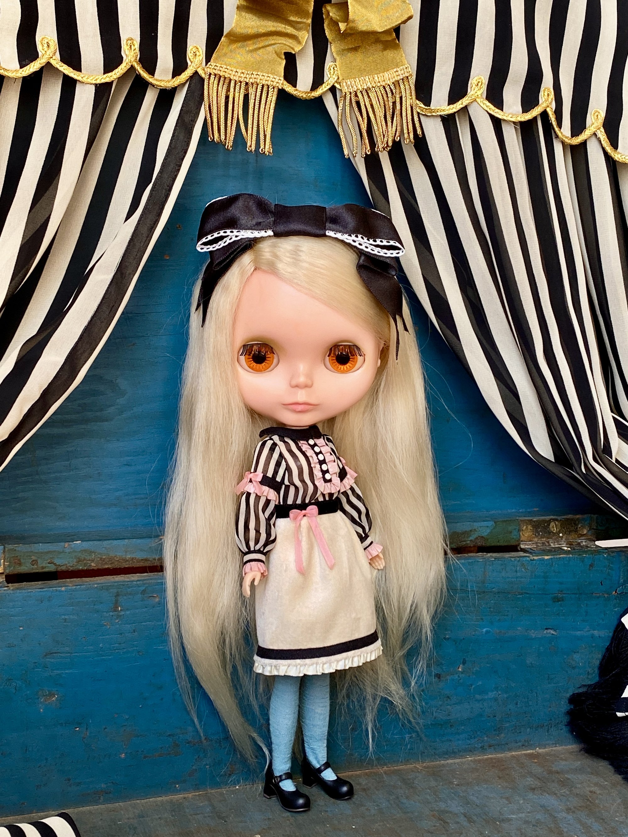 A dress of chiffon and soft velvet with a pair of leggings and headdress. Can also be made in Cherry size, please put in a note.