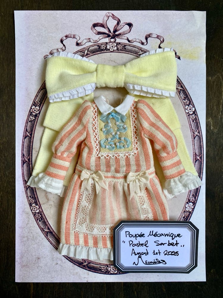 A delicious combination of pastel tones. Handwoven cotton from India with silk ribbon and glass bead embroidery.
